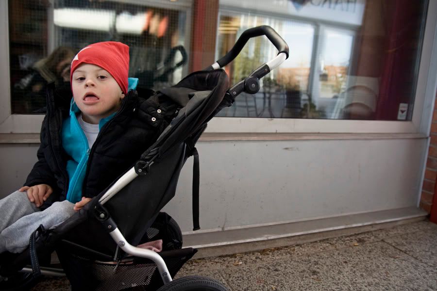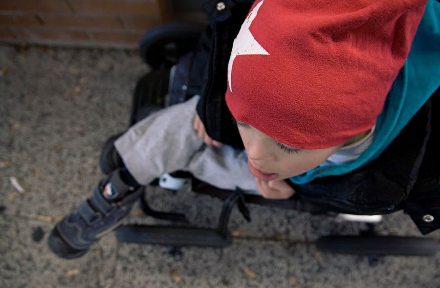 Förra veckan hade Albin två dagar som han var hemma från skolan. Ena dagen var det klarblå himmel så jag och Albin tog en långpromenad till Täby kyrkby där vi handlade lite lim till Albins fotobok.