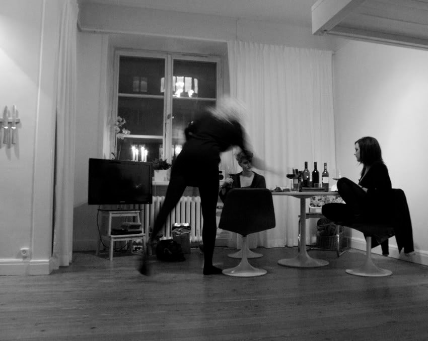 Mat, dans och lögn.Lite te med Malin. Sen sova!